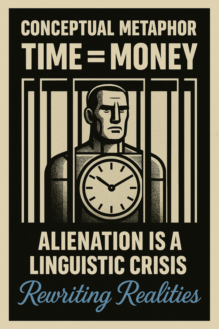 Time is not money but Life. This poster-essay explores how language shapes our reality, and how we can rewrite it.